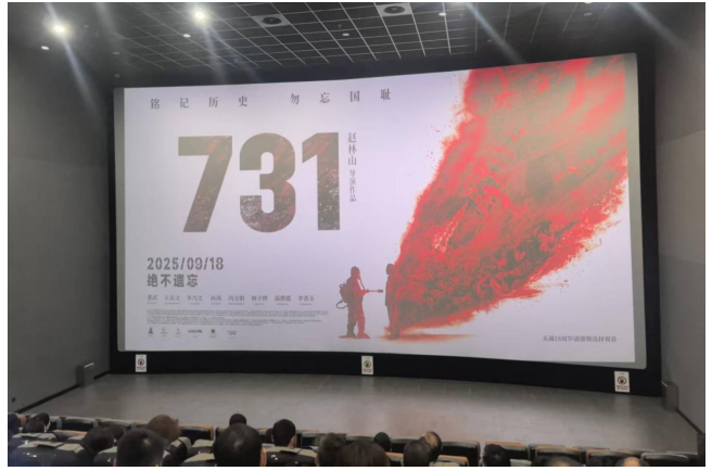 电影《731》主要讲述了抗战胜利前夕,侵华日军为了扭转战局,在黑龙江哈尔滨平房区开展细菌战研究,屠戮百姓进行人体实验的故事。荧幕上一幕幕触目惊心的画面、一个个鲜活的生命消逝的场景,无声地诉说着战争的残酷与侵略者的暴行,深深震撼着在场每一位党员的心灵。大家神情凝重,回顾那段血泪交织的历史,深刻体会到“落后就要挨打”的沉痛教训。