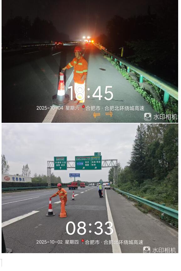合肥北环高速养护项目部则全员坚守一线,加密全线巡查频次,对路面坑槽、桥梁伸缩缝等关键部位进行地毯式排查,保障道路设施完好。同时,服务区增配保洁力量,每日至少1次全面清扫服务区及进出匝道,以整洁环境提升司乘体验。