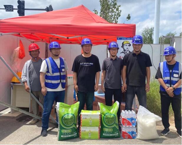 25日下午,公司副总经理刘勇一行前往朝阳路项目,为高温下辛勤工作的同志送防暑物资,并查看项目施工情况,他叮嘱项目人员高季节要保进度更要保健康。
