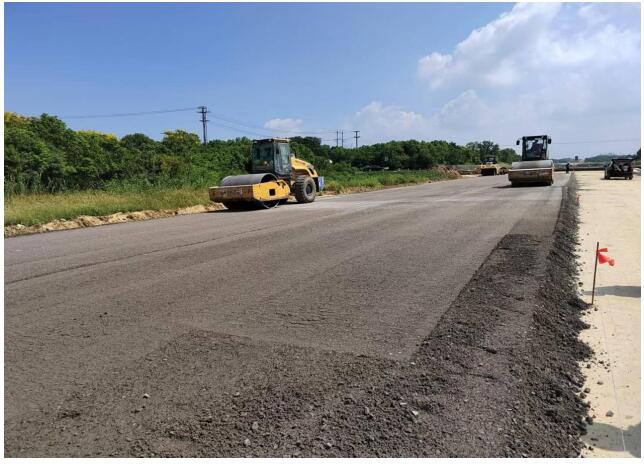 经检测,本次试验段水稳底基层外观均匀密实,平整度、厚度、压实度等各项技术指标均符合规范及设计要求,相关检测数据及成果将作为大面积水稳施工的指导依据,为后续路面水稳大范围铺筑提供了可靠的实验数据及技术支持。