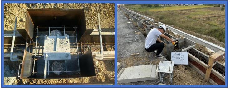 为确保声屏障基础质量,在完成混凝土模板支设后,声屏障班组及时对模板质量、钢筋绑扎效果进行检查,并在验收合格立即展开混凝土浇筑。