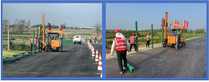 面对地形复杂、时间紧、任务重,护栏班组齐心协力,多点开花,各处流水作业,连贯自如,奋力冲刺十一月底交工目标。