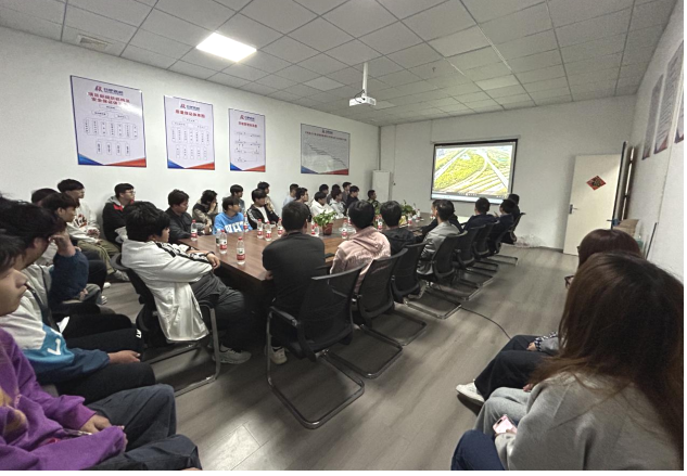 在项目部会议室,项目负责人向前来参观的师生介绍了企业情况及近年来企业取得的发展,随后就沈阳路项目情况及现阶段水稳施工情况进行重点介绍。