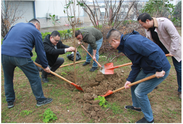 活动当天,参与人员热情高涨,早早抵达植树现场,迅速投入到植树工作中。大家分工明确,默契配合,有的挥锹铲土、有的搬运树苗、有的培土填实,各个环节有条不紊地进行。尽管天气有些许凉意,但大家的额头上都冒出了汗珠,在大家齐心协力的努力下,一株株树苗扎根在土地上,为原本略显单调的场地增添了许多生机。