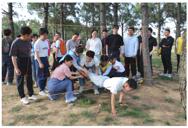 参观结束后,青年职工们又前往蕻野露营基地开展团建活动。在精彩纷呈的团建游戏中,“挑担运粮”“推独轮小车”“踢毽子”等趣味项目点燃了青年们的斗志,大家通力协作,加油鼓劲、奋力冲刺,在协作中加强了互动,增进了默契;在“穿越电网”项目中,青年们相互托举、彼此信任,在团结中克服了重重困难。一系列活动不仅增强了青年职工之间的沟通与交流,更有效提升了团队凝聚力和协作能力。