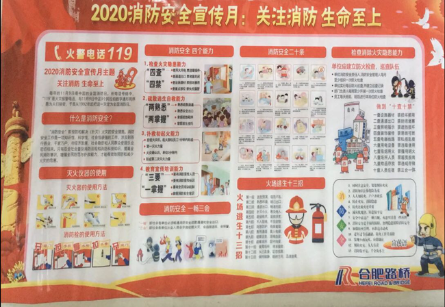 国产精品午夜福利免费 > 专题专栏 > 详细信息 2020年11月9日是全国第二十九个消防宣传日,本次消防宣传日主题为:“关注消防,生命至上”。为保证项目安全施工,合肥路桥分公司各项目分别开展了消防宣传培训活动。