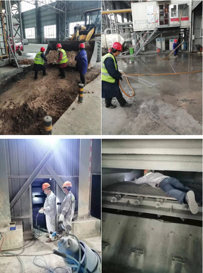 在进行设备保养的同时,也要进行卫生清理,如油污、泥土等洒落地面,由设备保养人进行卫生清理,以保证设备处于最佳状态,出色地完成后续生产任务。对于重点设备、重点装置如提升机、拌缸、振动筛等,组织相关人员编队分组开展细致检查。在检查过程中,对于发现提升机链斗螺丝掉落和变压器交流接触器损坏等问题都及时对其进行了更换。