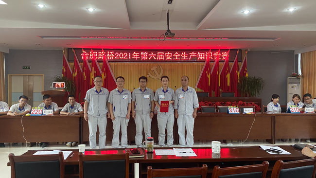 首先全体人员观看学习习近平总书记关于安全生产重要论述及其他法律法规等安全警示教育宣传片;随后开展合肥路桥第六届安全知识竞赛。本次竞赛由一、二、三、路面、骏腾分公司及地铁项目部共6支队伍参加,比赛过程中,选手们注意力高度集中、认真听题答题、观众互动环节精彩纷呈,最终一分公司和地铁项目部获得团体二等奖,路面分公司获得团体一等奖,王斌、李欣、王昌盛,张燕,吴乐五位同志获得了最佳选手称号。