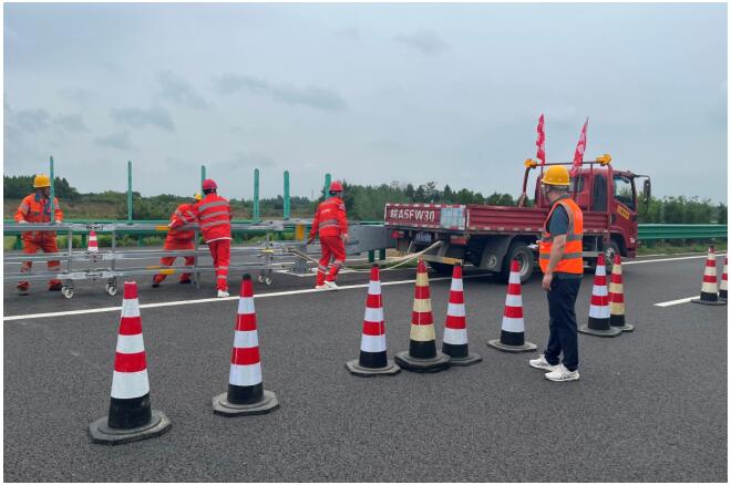 为提升高速公路安全应急处置能力,结合生产实际,明巣高速合肥段2023-2025年度日常养护项目部联合明巣高速公司、路政大队、交警大队、养护单位、施救单位等7家单位在明巢高速合肥段道路阻段中分带开口应急演练联。