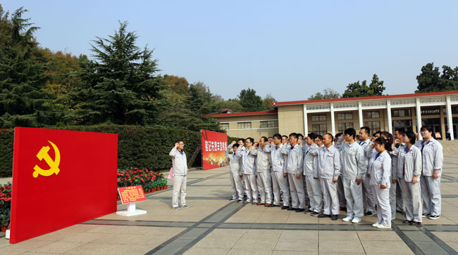 在讲解员的带领下,党员们走进安徽革命烈士事迹陈列馆,这里陈列着全省有代表性的从第一、第二次国内革命战争时期至社会主义建设时期的190位烈士的光辉业绩,存有450幅图画及烈士手抄、名人字画、领导题词等,还有全省各地县的烈士英名录。同志们认真听取讲解员的讲解,保持肃静,仔细观看,不时驻足停留。一段段感人的故事,一条条鲜活的生命,凭着对祖国的一腔热血,结束了不凡的一生。鲜艳的党旗沐浴着阳光,党员们统一着装,佩戴党徽,高举右手,重温入党誓词。苦难造就伟大,我们势必不辜负最初的信念,与时俱进,恪守承诺,坚持崇高的理想。