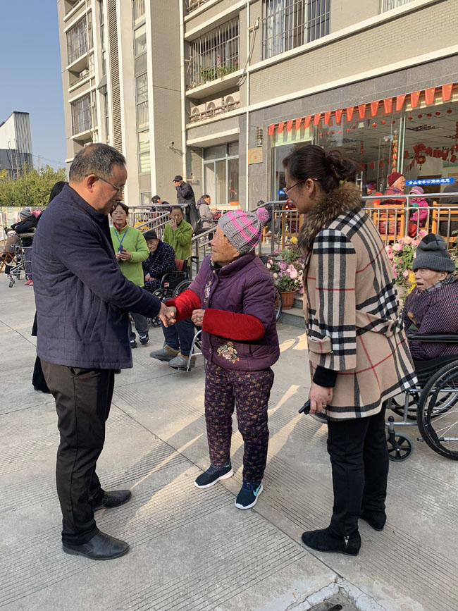 青山老年公寓是由包河区民政局批准成立的老年福利机构,为老人提供集托老、养老、娱乐、心理关怀等服务。在管理员的带领下,我们依次参观了老人们居住的宿舍,休闲活动区和公寓食堂,房间内光线充足,整洁干净。活动区的老人们有的在打牌,有的在院子里晒阳光,有的坐在轮椅上不言语,也许是看着冬日里盛开的鲜花和依然葱郁的叶子。临走时,一位九十二岁的老人和杨总亲切的交谈,闲话家常。九十二岁的高龄,白发沧桑,身体依旧硬朗,缓缓的把我们送到大门口。
