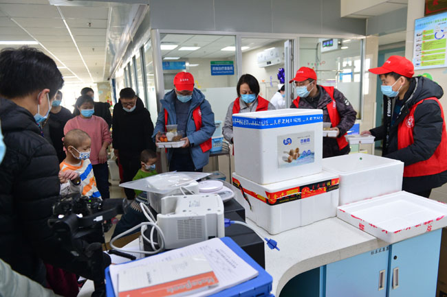 4日上午,合肥路桥交通轨道6号线项目部志愿者们一早便开始了忙碌,买菜、择菜、烹饪、装箱,上午11:10分,42份热腾腾的饭菜准时送达了安医二附院。在安徽善之源儿童保护部主任、合肥路桥学雷锋志愿服务队张燕同志的带领下,李晓磊、等3名志愿者带着42份美味可口的饭菜和橙果树美育机构捐赠的水果走进医院8号楼为患儿们送上新年的祝福。