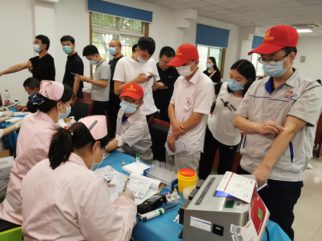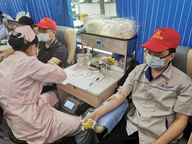 血液是生命之源,无偿献血是无私奉献、救死扶伤的崇高行为,合肥路桥以无偿献血这种特殊的方式积极展现党史学习成果和我为群众办实事的服务热情。上午9点,20余名党员和志愿者们井然有序地在街道大院排队等候,分批次按照流程,手机扫安康码、测量体温,填写《无偿献血健康征询表》。经过一系列的健康检查合格后,党员和志愿者们按照顺序开始献血,献血场地中的他们有的是多次参加无偿献血的老同志,有的是第一次参加献血活动的新面孔,有的是趁早匆忙赶来,献完血又将回到工地上的建设者,他们用实际行动诠释了担当和奉献精神。